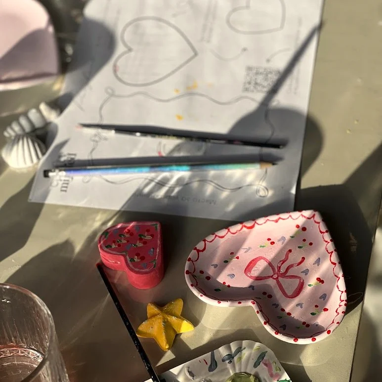 ☕ Керамично изкуство: Рисуване на чинийка сърце + поставка за снимка или комплект чашка и чинийка.